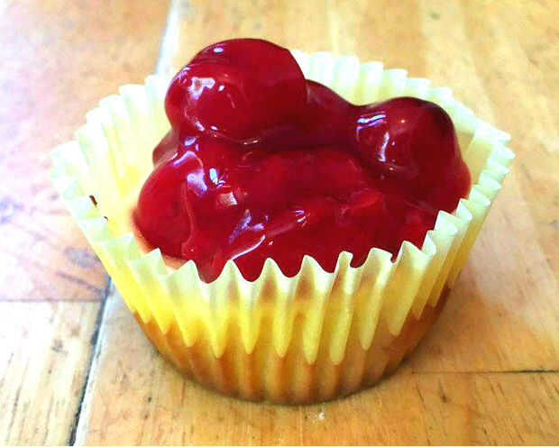 Estas mini tartas de queso son tan fácil y rápido de hacer y se ven increíbles con las cerezas y el esmalte en la parte superior!