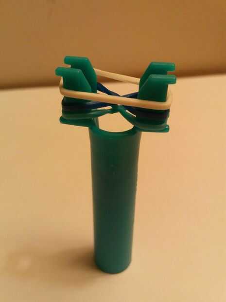manera fácil de hacer una pulsera de cola de pescado en cualquier lugar.Paso 1: materiales Todo lo que necesitas esSu elección de colores de gomasy un clip C o SPaso 2: Poner la primera banda de goma de color en una figura de ocho en los dos dedos. P