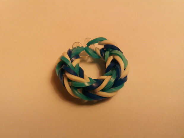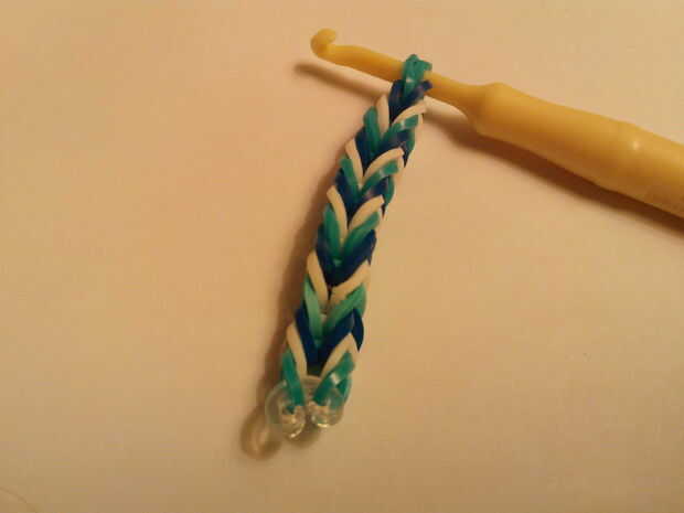 así es como luce la pulsera de cola de pescadoPaso 1: Tomar una de sus bandas de goma y enrosque en un ochoPaso 2: Colocarla en el telarPaso 3: Añadir una banda elástica que no se tuerce en un ochoPaso 4: Agregar otra banda de gomaPaso 5: Tomar su ga