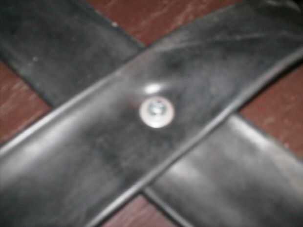 Aquí es donde tenemos tubos de bicicleta y la hoja de madera contrachapada gruesa. Corté la hoja de madera contrachapada para que tuviera una pulgada en el borde superior de la caja. Esto da el espacio de la plataforma para el movimiento y permite la goma de los tubos de la bicicleta tienen tensión para contrarrestar el peso del motor. Sin este espacio, la cosa entera sacudiría todo sobre el lugar. Con la goma y el espacio, el cubo mueve mucho menos.