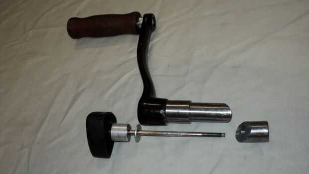 Uso de una arandela entre el extremo de la perilla y del eje grandemente reduce la fricción al apretar el botón de bloqueo y hace la acción sin herramientas. Un tornillo de fijación ¼ - 20 fue agregado al eje manivela para bloquear el eje y una manija fue creada e instalada, un Instructable fue publicado en que aspecto del proyecto y así no se repitan aquí.