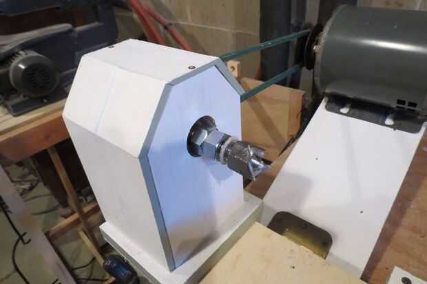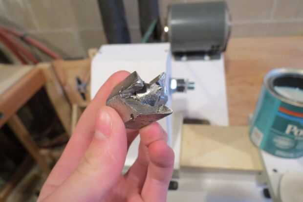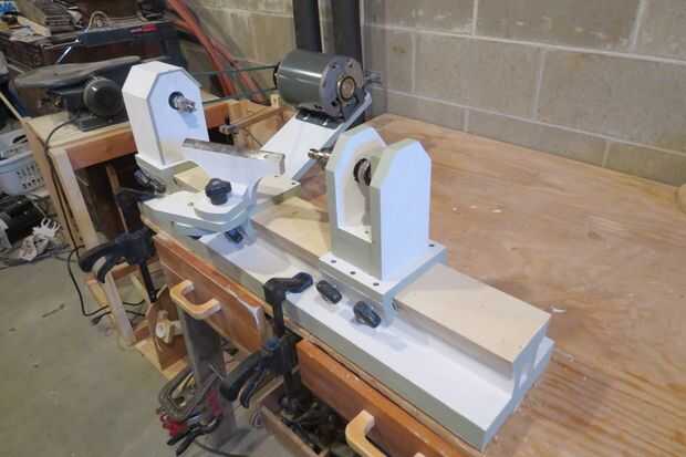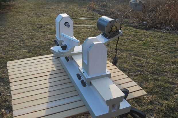 Después de se seque, el torno es completado! Todavía no tienen ninguna herramienta de torneado para trabajar con, pero con mucha dificultad pude utilizar algunos cinceles del Banco para girar un bloque de madera redonda.
