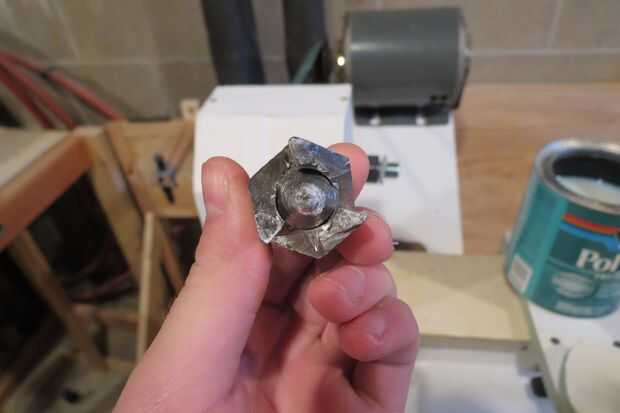 (Mal) soldado con autógena una arandela en un tornillo y perforar algunos agujeros en él para hacer una pequeña placa frontal. Entonces soldadas con autógena dos tuercas juntas y cortar los dientes en un extremo y atornillado en alguna varilla roscada para hacer un centro de unidad. De las dos piezas fácilmente tornillo en y fuera del eje.