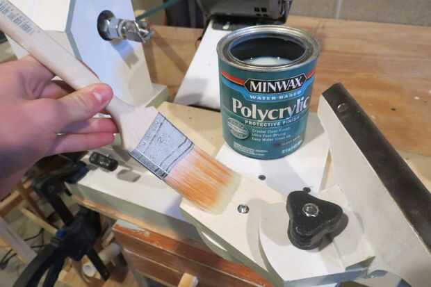 Para terminar el torno, pinté blanco y gris en los laterales y los bordes. Después de que fue pintado, una pareja capas de barniz al agua son cepillados en. RECORDAR a dejar la diapositiva sin tocar que se convertiría en pegajosa y se deslice.