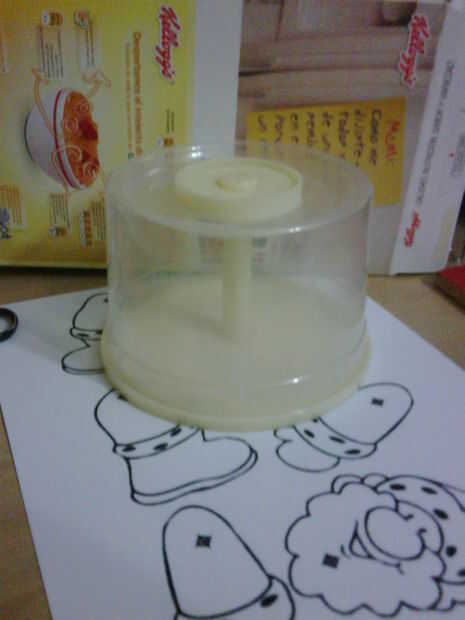 cortar un círculo de la caja de cereal y pegar en la torre de CD para obtener una superficie plana para la espuma