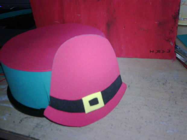 cortar la espuma negro solamente con la forma del cinturón, botas y guantes, y luego pegar las botas negras en las piernas rojo, la correa en el cuerpo... y así sucesivamente