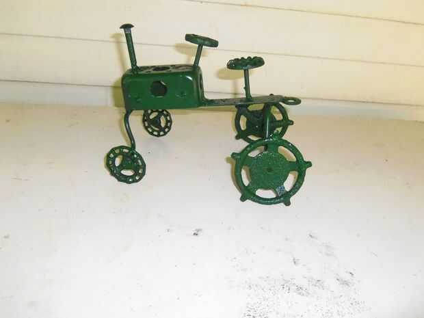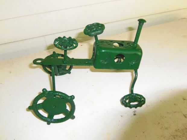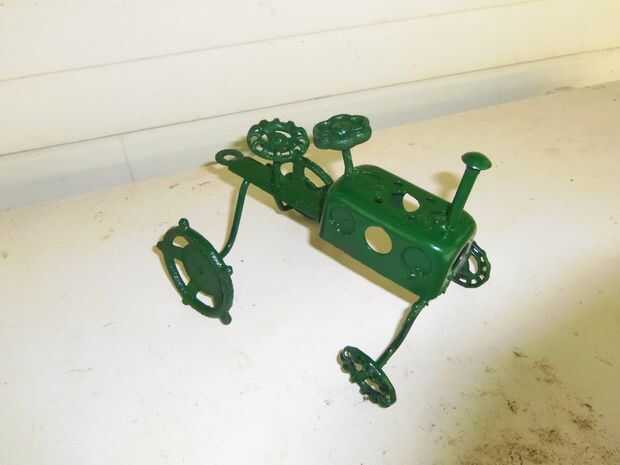 Finalmente conseguí un soldador un par semanas atrás y esto es lo primero que hice con él. es una copia (una mala copia en eso) de un mi abuelo que se hizo hace mucho tiempo. la carcasa del motor es una caja de acero de la salida, el volante, asiento y ruedas son agua las perillas de la válvula. el principal apoyo en la parte inferior es parte de una vieja silla de césped. los árboles, soporte asiento y columna del volante son clavijas de acero de una lavadora (creo que sostenían el tambor), el enganche es una arandela y el tubo de escape es un perno. Si necesita cualquier otra explicación de cómo hacerlo por favor comente y te voy a ayudar como mejor puedo. Si alguien decide hacer uno por favor enviar una foto.
