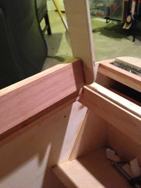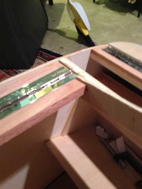 La sexta foto muestra una costilla que pongo entre largueros para ayudar a mantener el posicionamiento de la viga y darle el panel superior algo más que pegar para la fuerza.