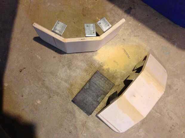 Corté algunos 1/4" paneles de madera contrachapada de roble para pegar en el interior de la caja basculante donde las defensas se puede montar con el fin de asegurar un soporte más fuerte. Utilicé tornillos de máquina con arandelas, las tuercas y Loctite para montar las defensas.