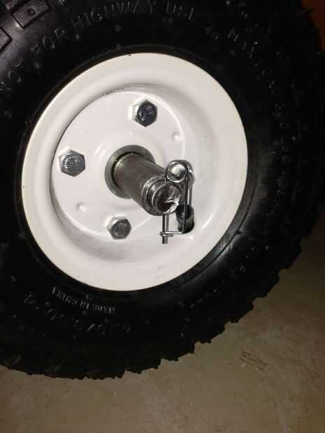 Usé eso Perno industrial en lugar de una chaveta porque quería ser capaz de quitar las ruedas para transportar el remolque en la parte posterior de mi SUV pequeño, y lo mejor es si el trailer no ruede alrededor allí.  También puedo necesitar poner el trailer encima de mi SUV algún día.  Si estas necesidades no se aplican a usted, una chaveta puede ser una mejor alternativa para mantener las ruedas y los espaciadores en su lugar.