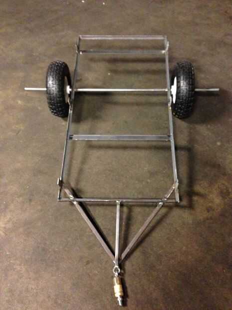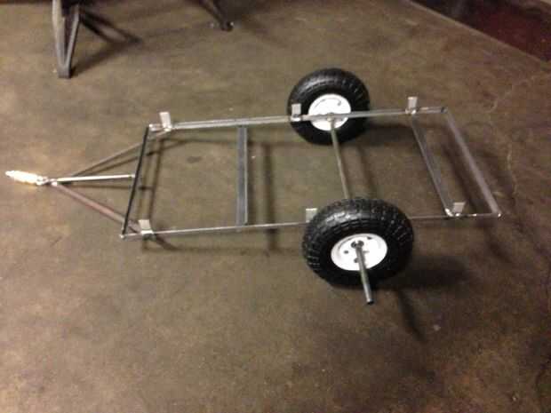 Por cierto, este trailer es no diseñado para montar en el "open road" (también conocido como "autopista").  Construí esta tirando detrás de mi bicicleta o scooter (que cariñosamente denominamos un "skateboard impulsado por un motor de weed-eater"... Entiendo que esto es el scooter más barato se puede comprar).  Me sorprendería si la moto y remolque golpearía mph 25.  Si quisieras construir un mini trailer para tirar detrás de una moto que recomiendo que rampa el carrito... instalar un mejor sistema de rueda e instalar incluso ballestas.  He visto aplicaciones donde gente conseguir resortes planos de carros de golf para instalar en camiones pequeños.  Considerado así, pero se habló de ella por un amigo.  Después de todo, no estoy llevando una carga muy pesada, y no voy a ir tan rapidamente.