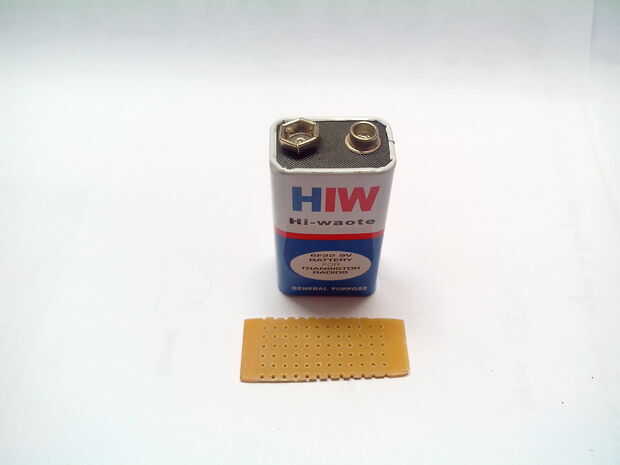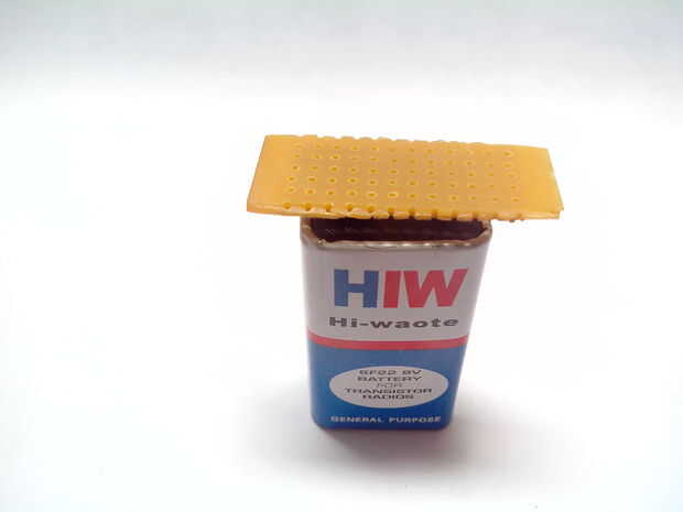 Primero de todos permite comenzar con corte un PCB hasta el tamaño requerido. El tamaño para comparar es un clip de batería de 9v, puede parecer muy pequeña al principio pero no te preocupes que mantendría bien todos los componentes. Utilice un papel de lija para suavizar los lados de la placa y para limpiar los bordes ásperos.
