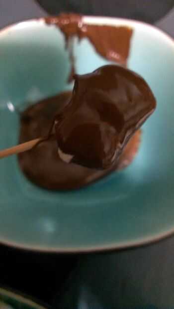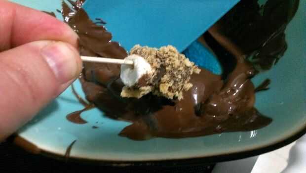 6. capa chocolate - rápidamente Marhmallow costra Graham Cracker de la inmersión en chocolate derretido y remover.