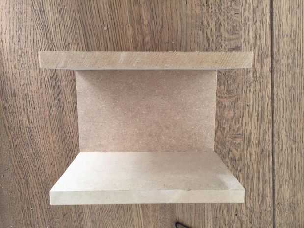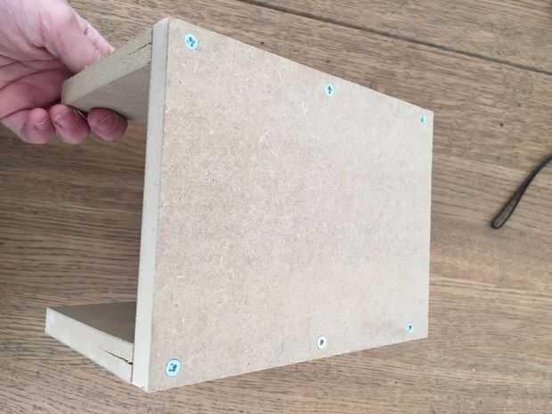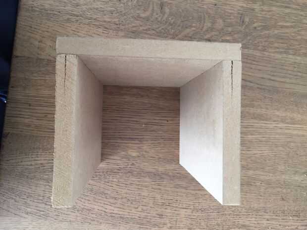 Primero conectas una pieza grande a dos pequeñas piezas de madera. Esto es para que el ventilador puede caber en la derecha sin problemas.