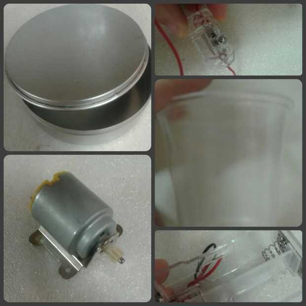 tenemos una lata Altoids y una botella de agua. ¿Qué podemos hacer con eso? ¿Por qué no hacer un ventilador? Es lo que hice. Utilizado la curva de la botella de agua para hacer las aspas del ventilador y un viejo motor a girar alrededor.Usé la tapa d
