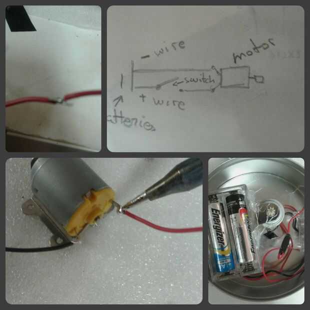 Debe conectar la batería al interruptor y luego al motor con los cables adecuados y postes. Utilice cinta aislante para conectar todo Compruebe que funciona bien y asegúrese de que se mueve a la derecha.