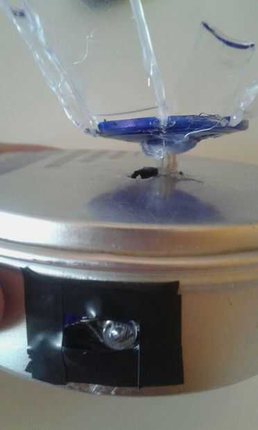 tenemos una lata Altoids y una botella de agua. ¿Qué podemos hacer con eso? ¿Por qué no hacer un ventilador? Es lo que hice. Utilizado la curva de la botella de agua para hacer las aspas del ventilador y un viejo motor a girar alrededor.Usé la tapa d
