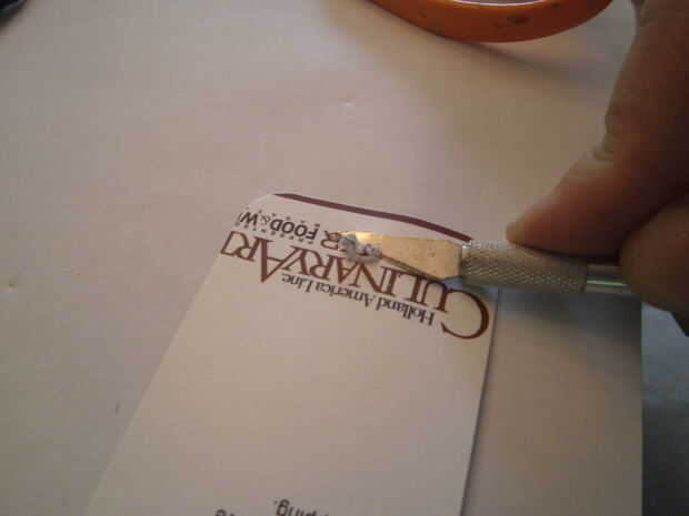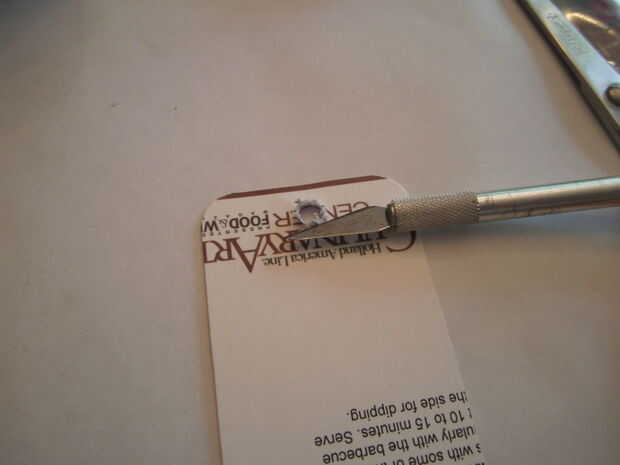 Una vez que tenga el tamaño correcto, cuidadosamente corte los bits extras de papel y cartulina de la parte posterior de la placa frontal, como se muestra en el cuadro 2 y 3.