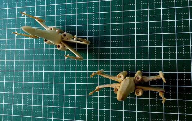 Este modelo del palillo paletas mini representa una X-wing con las hojas de S en la posición de ataque. Esta muestra de modo que el X-wing obtuvo su nombre...