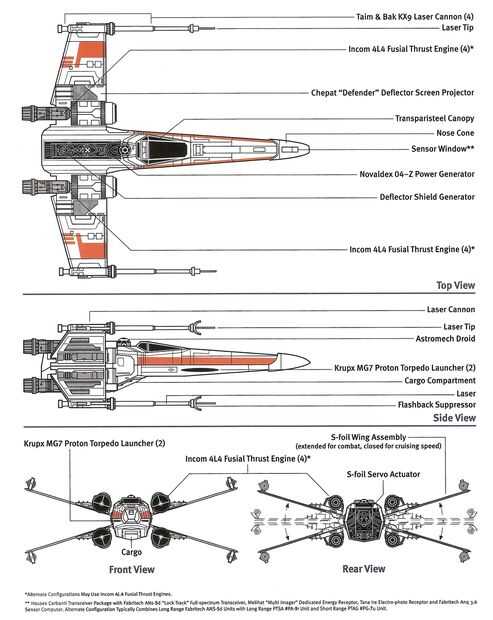 He utilizado los esquemas de "http://i730.photobucket.com/albums/ww307/Agent239/Star%20Wars/X-wing_schematics-1.png" como la principal referencia. Un esquema del fuselaje que también dependía vino desde la URL"http://fc07.deviantart.net/fs71/i/2010/247/d/5/x_wing_blueprint_wip_by_imclod-d2y0gij.png".