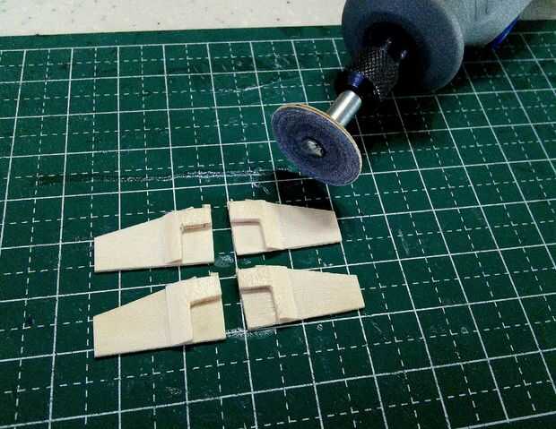 Los repuestos de las Asambleas de ala fueron utilizados para hacer los montajes de motor. Cada montaje fue tallada de una pieza en forma de L con un disco abrasivo estándar y terminado con un accesorio de lijadora de disco con una herramienta de la moto. Estos fueron pegados encima de cada ala y deja secar. Finalmente, el motor se monta en lijado en ángulo para simular el "Chepat Deflector pantalla proyector".