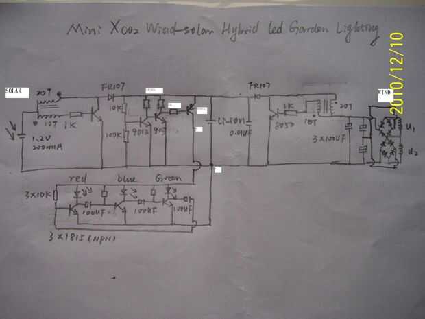 Añadir un circuito de control de sun para funcionar él llevó solamente brillo en la noche pero la turbina de viento cargue la batería durante todo el día y toda la noche.