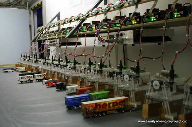 Ok.  La configuración está comenzando a lucir bella.  Pero qué pasa con los coches de carga.  Se diseñan a mano recogido y enchufado.  Pero eso no siempre es conveniente.  Wonderland miniatura tiene su propia plataforma de carga.  Funciona como algo fuera de la película Cars de Pixar.  Aquí le damos algunos enlaces de como hacerlo.  Por desgracia, su en francés.  (¿Por qué no puedo algo en inglés?) Por lo tanto debes utilizar Google Translate.