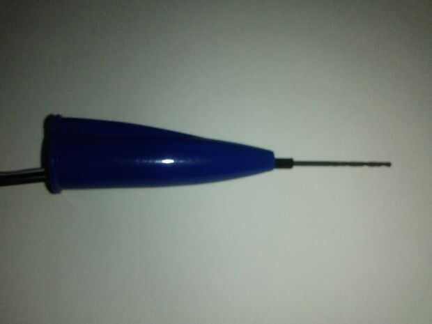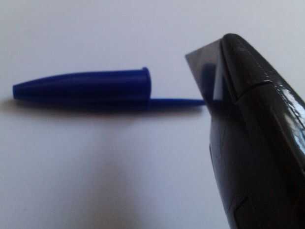 Para mantener la cadena en su lugar grabado al clip de batería de 9V. En el otro lado un nudo y luego estira una parte en un agarre de lápiz sobre la tapa, luego había metido la cuerda por debajo de ella.