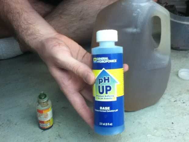 General Hydroponics hace dos productos químicos pH hacia arriba y hacia abajo, que son soluciones de base y ácidas alimentos seguros que están diseñadas para ajustar el pH de sistemas hidropónicos. Son muy concentrados, así que sólo añadir un poco a la vez para marcarlo en.