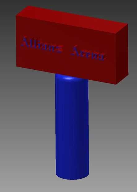 He diseñado todas las piezas de CAD para mi proyecto. El estadio, que es una parte, es lo que me tomó más tiempo para diseñar; No estoy demasiado familiarizado con diseño en 3D, y me tomó un tiempo conseguir los soportes correctos. El signo de la rotación fue muy simple para el diseño. Es dos partes, el poste y el cartel, que obliga con peg en el poste y un agujero en la muestra.