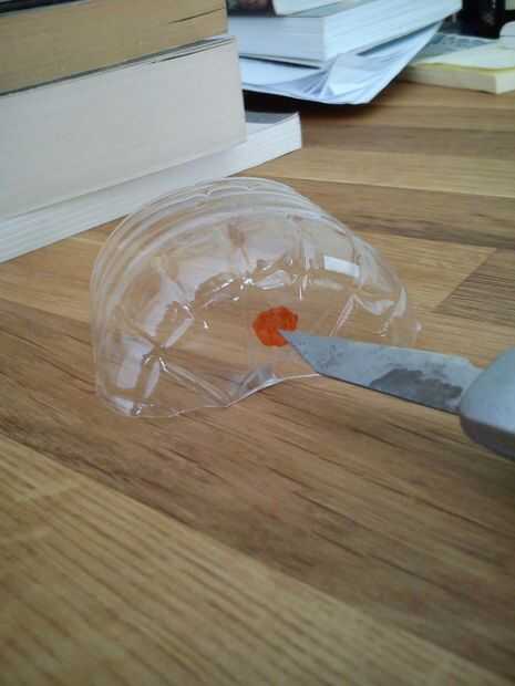 En primer lugar, cortar la botella de agua en igual tres secciones longitudinales (este sólo debe ser aproximado) y dejar de lado la sección con el cuello como necesita esto más adelante. Puede descartar la sección central totalmente. Corte la sección final en la mitad, por lo que se ve como la base de un prisma circular semi. La superficie exterior del tramo final y el interior de la arena superficial del segmento del cuello y utilizando pegamento ellos juntos, por lo que forman un canal.
