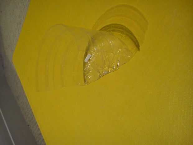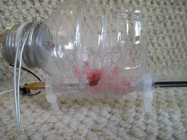 Cuando el pegamento ha fijado, corte dos agujeros justo debajo del centro de la botella, uno a través de la sección del extremo y la otra justo debajo del cuello, lo suficientemente grande para una pluma de ajuste apretado en. Empujar el lápiz por los agujeros, hasta que la punta está totalmente hacia fuera, y aproximadamente 1/2 cm de la pluma es también a través de. Atar un lazo de cable alrededor de ella, en cada extremo de la botella para asegurar la pluma en esta posición es donde pasa a través (véase el cuadro), pegar también si es necesario.