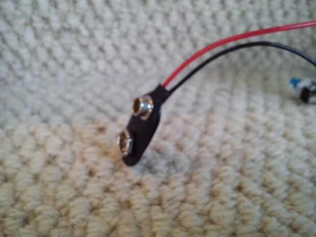 Soldar una pata del motor a una sección de alambre soldada al interruptor de botón (opcional). Soldar la otra pata del motor para uno de los cables de la batería de 9v, cable de conexión. Completar el circuito luego suelda el otro cable desde el conector a la otra pata del interruptor pulsador. Conecte la batería de 9v para el conector y comprobar que el motor funciona al tratar del interruptor.