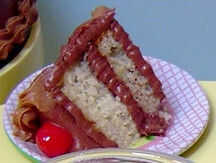Para hacer la torta de chocolate: el cupcake de tamaño estándar de nivel y retire el forro de papel. Agravio el cupcake para hacer dos capas de pastel. El glaseado de chocolate, escarcha entre las capas, pila y luego helada el cupcake entero. Una cenefa superior e inferior de la pipa. Reducir a la mitad las habas de jalea muy cereza y superior del Magdalena con ellos. Cepillarlos con jarabe de maíz para darles brillo. Cortar un trozo y colóquelo en un plato pequeño. Usé uno de juego de té de mi hija.