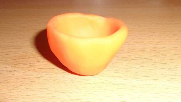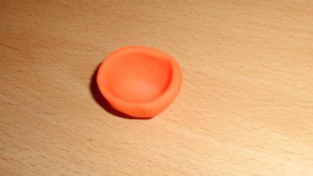Rodar una pelota de naranja play doh y ahuecar con un bolillo de punto o las manos.