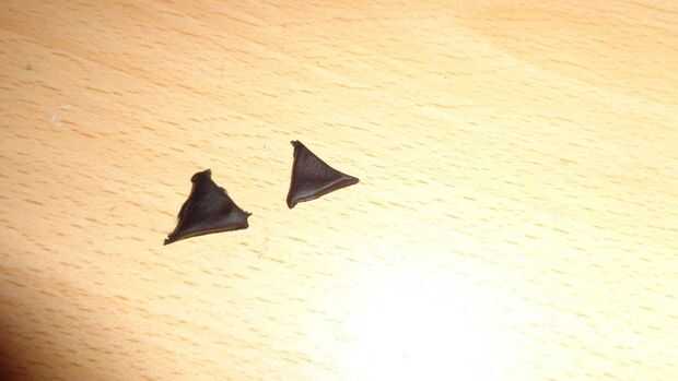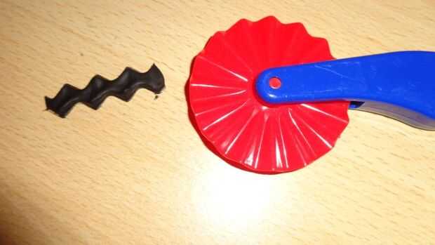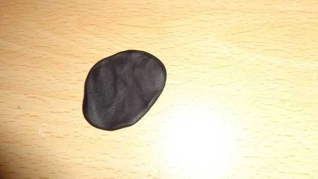 Cortar dos triángulos de doh juego negro y utilice una herramienta de ventilador para hacer la boca, luego agregar el cubo de