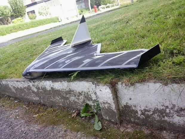 primero tomar 2 placas foamboard (grueso 5mm) y cortar con longitud de 50cm y ancho 60cm. Luego cortar con la forma de la verdadera stealth b2, pero deja al menos 15cm detrás de la cara exterior.
