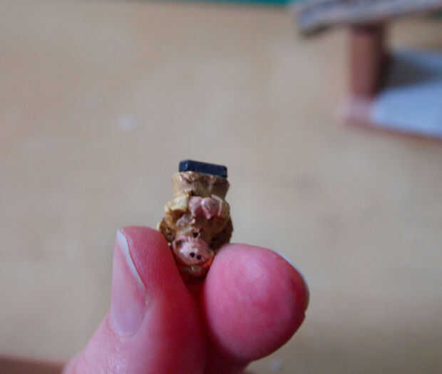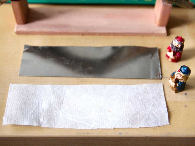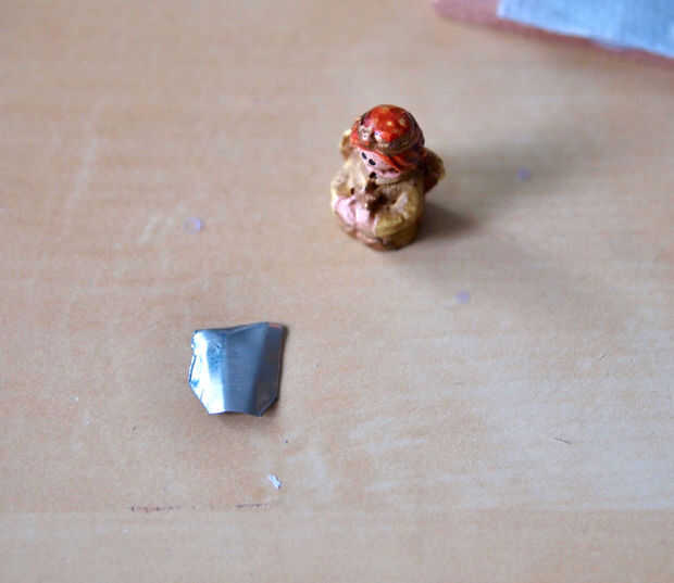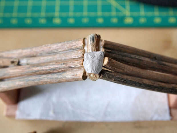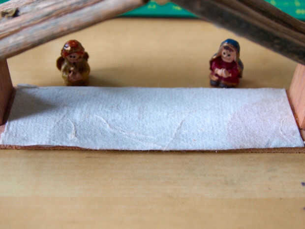 Luego que la pequeña perca Ángel encima del techo. Me corte un pequeño pedazo de metal pintado un lado marrón (para que mezcla con las ramas del techo) y había pegado a la viga del centro hacia la parte delantera.