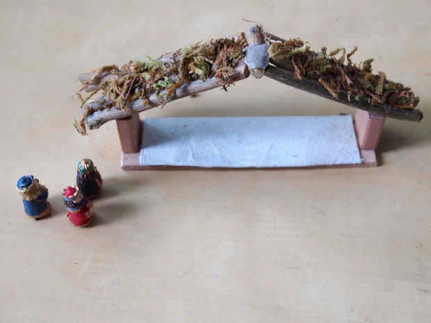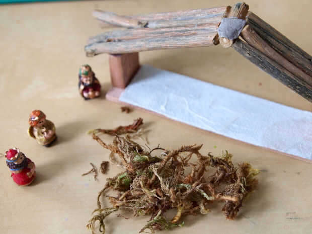 En este ultimo paso solo estamos agregando moss a la azotea. Analizó el musgo en pequeños trozos para que quede mejor en el techo. Frota una barra de pegamento sobre la superficie de la azotea y me presiona el musgo en.