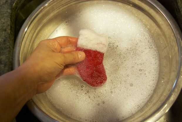 El otro factor para el batanado es agitación: mueva suavemente la pieza a través del agua, frotar y manejo hasta la lana comienza a disminuir alrededor del patrón. En pocos minutos, usted debe comenzar a ver una media reconocible.