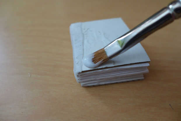 Pegamento tanto cubre al libro y deja secar. Si cualquier parte del cuero se superpone en el lomo, encolado. Luego pegue en la columna vertebral. Recorte cualquier exceso de cuero.