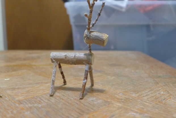 Te recomiendo utilizar pegamento caliente para este paso en caso de Coloque mal la pierna y el reno no pararse correctamente entonces puede llevarlo a cabo y pegar otra vez.