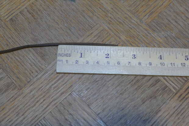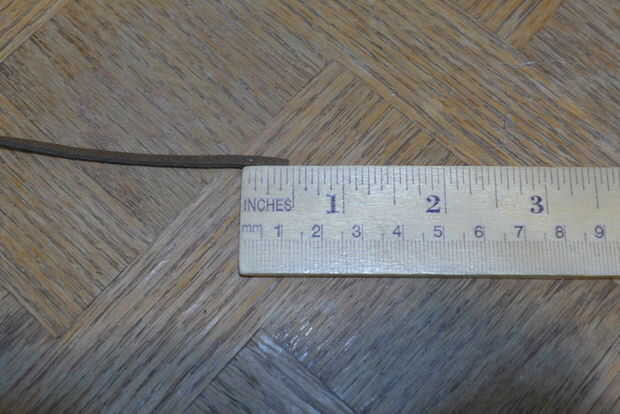 El arnés para los ciervos es hecho de tres trozos de cordón. Dos piezas son 2 1/4 pulgadas de largo y la otra es sobre 1/4 de pulgada largo.