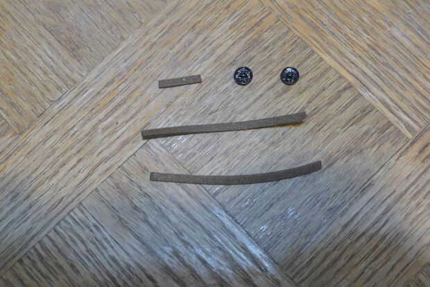 Primero caliente pegamento de un lado de un broche de presión al final de una de las piezas más largas. Dale la vuelta y pegar el otro lado para el otro extremo de la lazada.