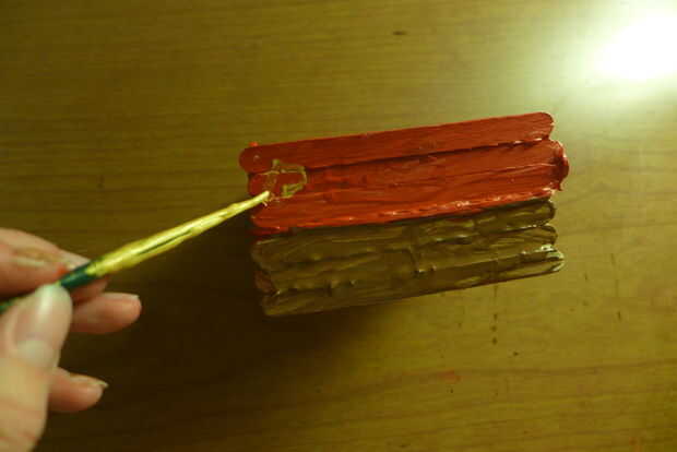 Pintar el cuerpo de trineo rojo, el marrón de corredores del trineo y añadir algunos remolinos decorativos de oro.