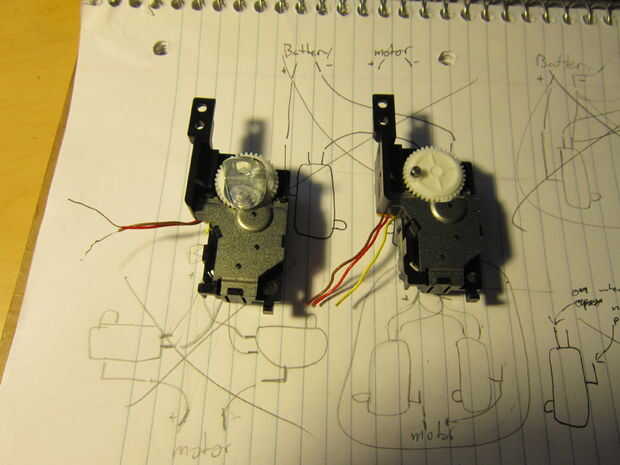 -usted necesitará 2 motores que están orientados hacia abajo, tiré de mina de dos unidades de disquete viejo
