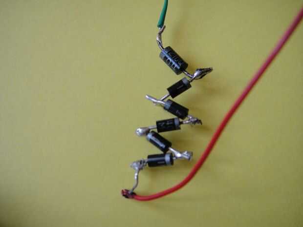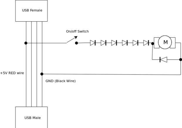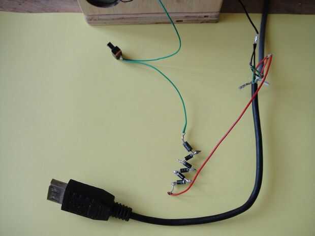 Por debajo de la máquina hay un circuito simple para reducir la velocidad del motor. Para ello en que utilicé 6 diodos serie, cada diodo cae sobre 0. 6V. Encontré el número de diodos puramente por ensayo y error, deberás hacer lo mismo, empecé con 8 diodos y quité hasta que el motor funcionaría lentamente. Originalmente trataba de resistencias para frenar el motor, pero no pude conseguir que funcione con eficacia, como la resistencia necesaria para frenar el motor limita la corriente demasiado para que el motor arrancaba a sí mismo. Los diodos no limitan la corriente, pero soltar la tensión suficiente para correr a una velocidad lenta y agradable. Seguramente hay una forma mucho mejor para hacer esto, pero no tengo la electrónica sabe como construirlo. He incluido un diagrama que muestra todas las partes.