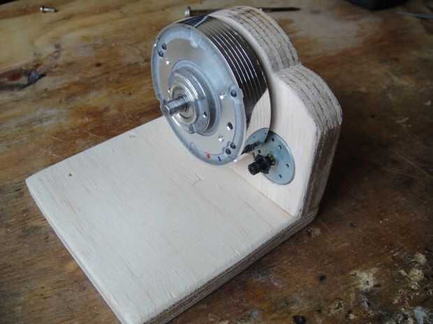 Cuando usted ha hecho esta pieza, puede atornillar a la base con dos tornillos de madera de 25mm, asegúrese de que usted les avellane. El motor se ajustaron en su lugar con epoxi de 5 minutos, asegúrese que el motor es recta como la polea trabajará su camino flojo si no es así. Puede Agregar la goma para el motor en la etapa.