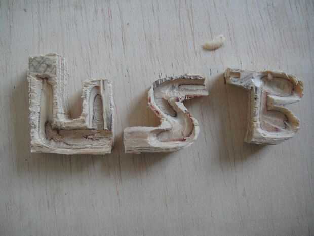 Las letras son marcadas y talladas, entonces ellos se recortan utilizando una sierra de marquetería (o un pergamino vio si tienes uno). Había tallado los canales utilizando el veiner de 6mm, asegúrese de que los rodamientos de bolas encajen como usted les talle ya que es casi imposible de tallarlos vez que se recortan. Las letras tienen bloques poco añadidos el modo que usted puede pegar juntos, no se olvide de estos. No te olvides de taladrar los agujeros en el B antes de que usted corte hacia fuera, es realmente duro mantener algo tan pequeño y perforarlo!