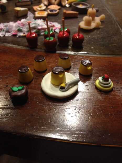 Hacer un pudín de miniaturas con arcilla polimérica (Fimo soft) y usando la resina para crear el efecto caramelo